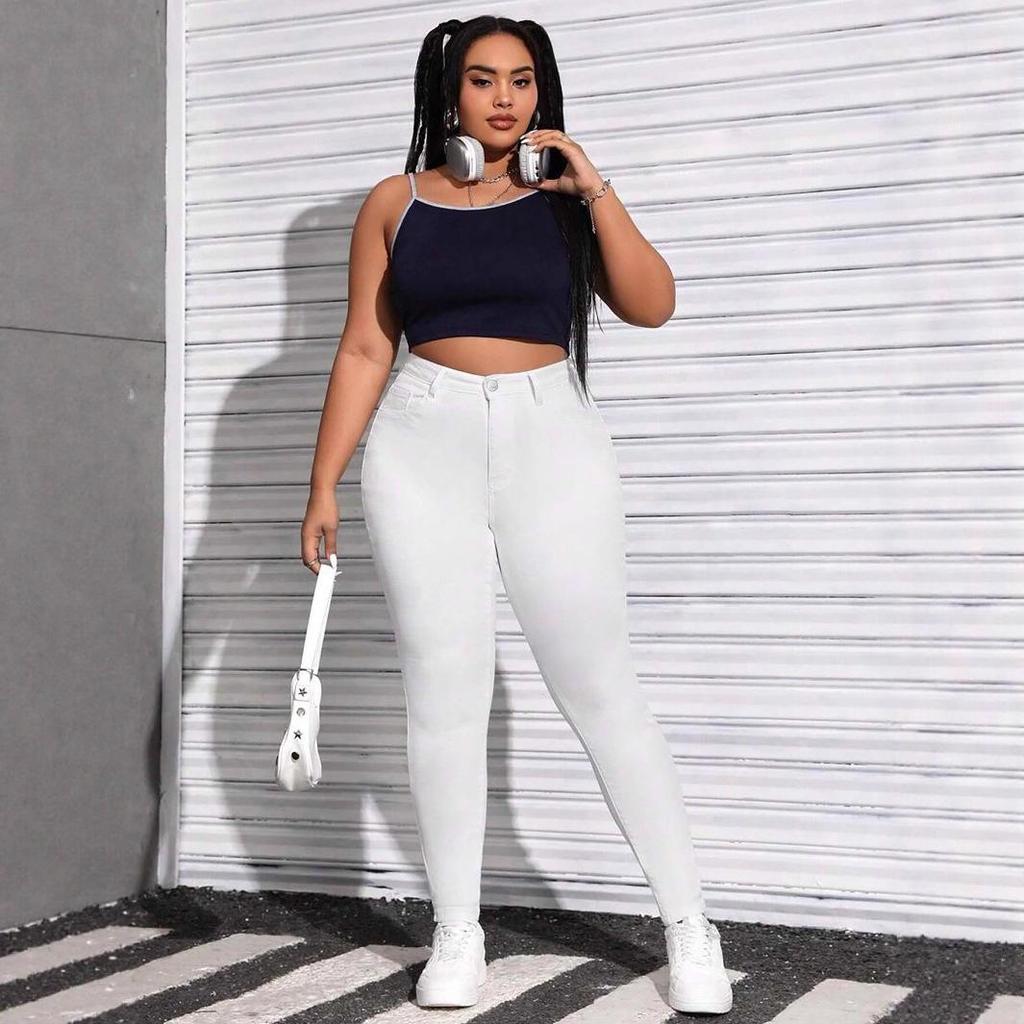 Откройте для себя идеальное сочетание комфорта и стиля в этих джинсах скинни из высокоэластичного денима классического черно-белого дизайна.. Изготовленные из высококачественного хлопка, они обеспечивают исключительную мягкость и эластичность, гарантируя flattering посадку для фигур plus-size.. Эти джинсы идеально подходят для того, чтобы придать шика любому повседневному образу благодаря своему элегантному силуэту и универсальному виду.. Независимо от того, готовитесь ли вы к вечернему выходу или предпочитаете повседневный стиль, эти джинсы обеспечивают идеальную основу для любого наряда.