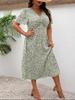 2025 European & American Summer Leopard Print Plus Size Women's Short Sleeve Dress — купить товар онлайн с бесплатной доставкой по всему миру!