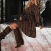 Модное женское свободное платье в горошек с длинным рукавом и плиссировкой