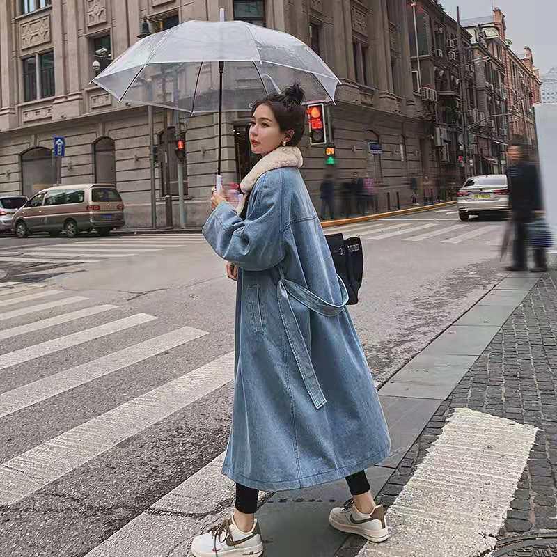 Женская джинсовая парка средней длины с шерстью ягненка (Зимняя коллекция 2025) — купить товар онлайн с бесплатной доставкой по всему миру!