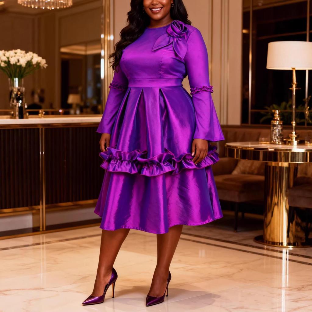 Элегантное женское платье большого размера с 3D-цветами и рукавами-воланами — купить товар онлайн с бесплатной доставкой по всему миру!