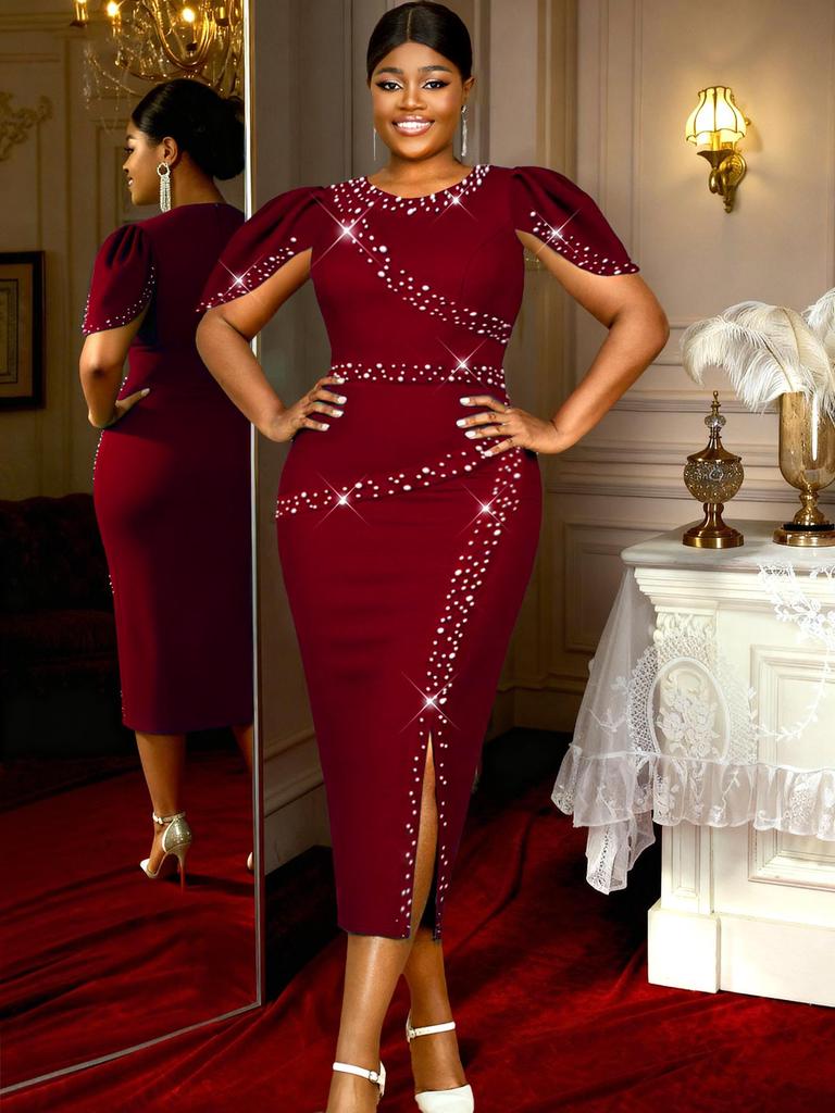 Женское Элегантное Вечернее Платье Большого Размера с Бусинами, Разрезом и Сборками — купить товар онлайн с бесплатной доставкой по всему миру!