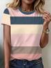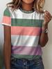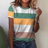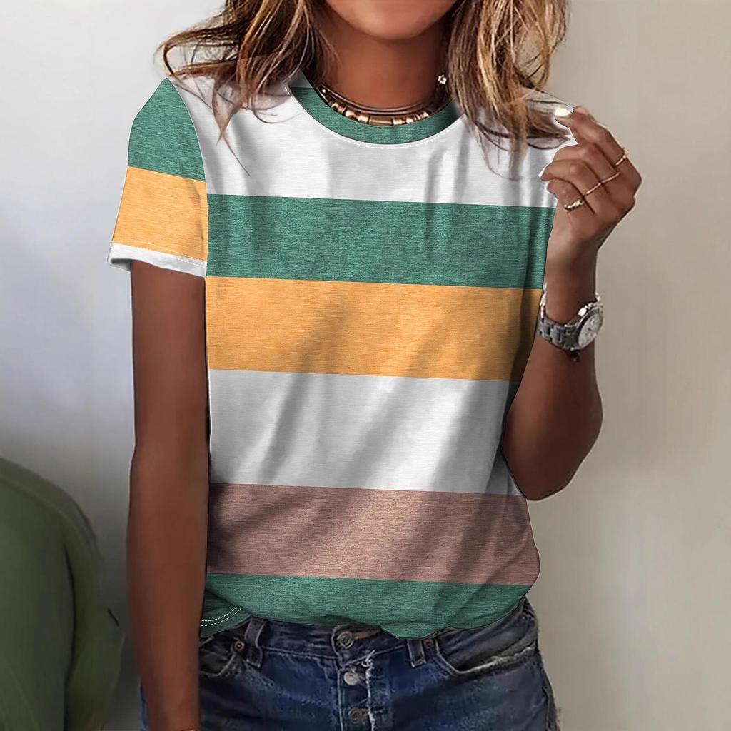 Женский клетчатый и полосатый топ с коротким рукавом и круглым вырезом большого размера - Желтый/Красный, Коллекция 2025 — купить товар онлайн с бесплатной доставкой по всему миру!