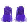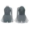 Костюм для танцевального выступления девочки Блестящий лиф с пайетками Трико с юбкой из тюля Вырез на талии Асимметричный комбинезон
