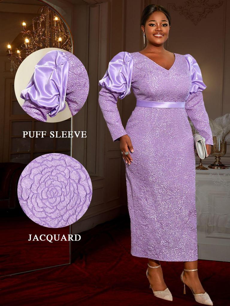 Элегантное длинное официальное платье большого размера из светло-фиолетового жаккарда с пышными рукавами. — купить товар онлайн с бесплатной доставкой по всему миру!
