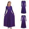 Блестящее платье для церковного хора со стразами для девочек: Макси-платье А-силуэта с круглым вырезом и длинными рукавами для литургического танца