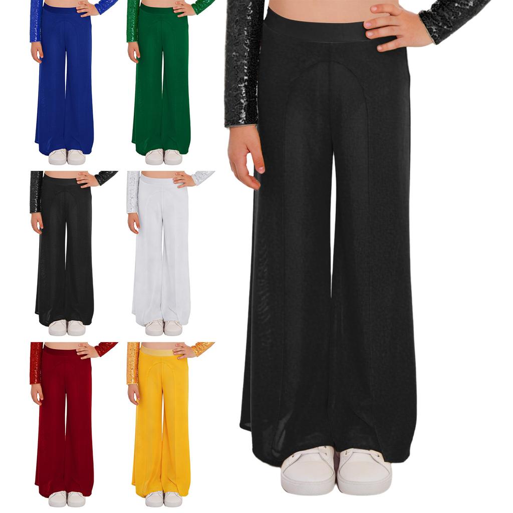 Girls Competition Dance Pants: Elastic Waistband Wide-Leg Mesh with Built-In Briefs for Lyrical Performance