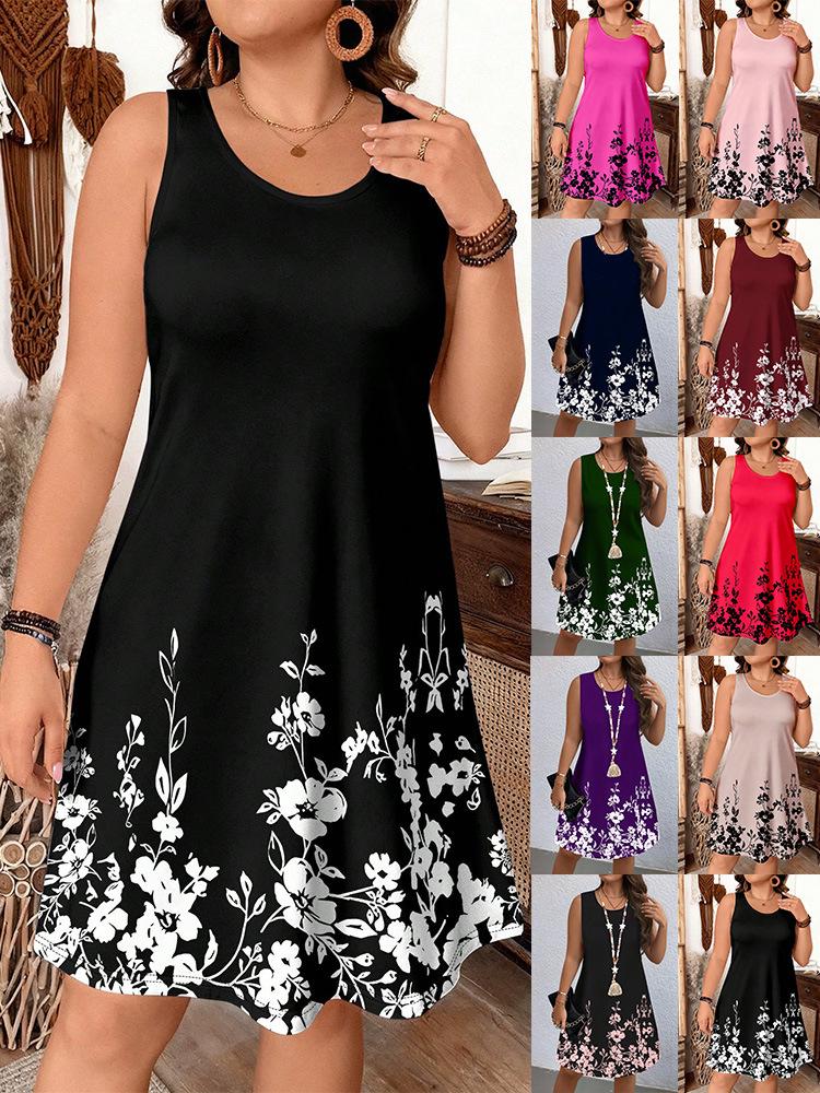 Европейское и американское женское элегантное платье-миди без рукавов с цветочным принтом, доступны большие размеры — купить товар онлайн с бесплатной доставкой по всему миру!