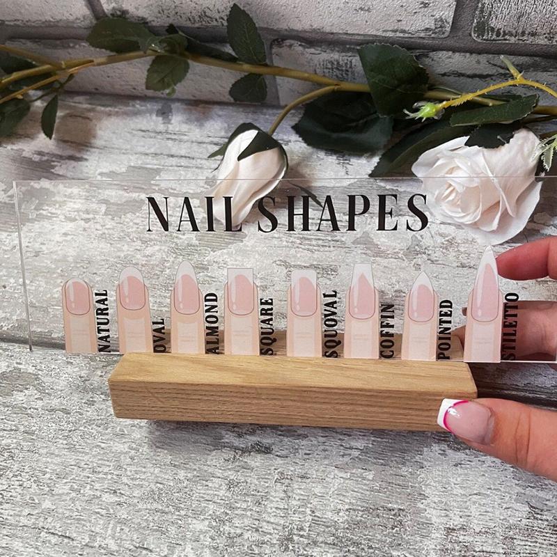 Acrylic Nail Shapes Display Board With Wood Base Mannequin Fingertips And Nail Shape Guide Static Artwork Sign For Salon Decor