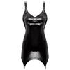 Womens Glossy Patent Leather Adjustable Straps Back Zipper Bodycon Dress