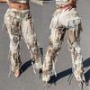 Новые женские джинсы с осенним окрашиванием тай-дай и бахромой, потертый дизайн, бохо, стритвир, повседневные джинсовые брюки с бахромой по низу, художественные мешковатые брюки