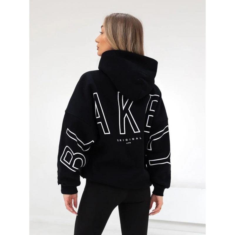 BLAKELY Новый модный женский свитшот с принтом, утолщенный, с длинным рукавом, свободный, с капюшоном, в стиле хип-хоп, повседневный домашний топ, черный