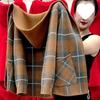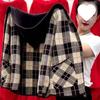 Клетчатая шерстяная куртка на молнии для женщин среднего возраста - Модная, Большого размера, Осенне-зимний, Короткий стиль