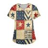 Женская модная футболка с принтом ко Дню Независимости, V-образным вырезом, карманом, короткими рукавами, униформа и топ для ухода