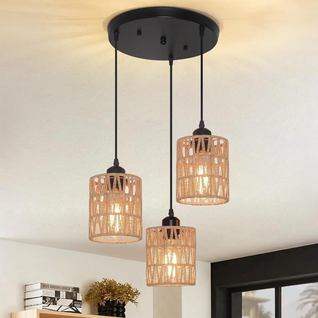 1/2 шт. Ротанговые подвесные светильники 3-ламповые ротанговые светильники люстры в стиле фермерского дома бохо освещение плетеные абажуры ручной работы
