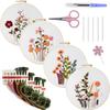 4 Pack Flowers DIY Embroidery Kit with Embroidery Hoop Embroidery Starter Kit 30x30cm for Adult Beginners Gift for Women