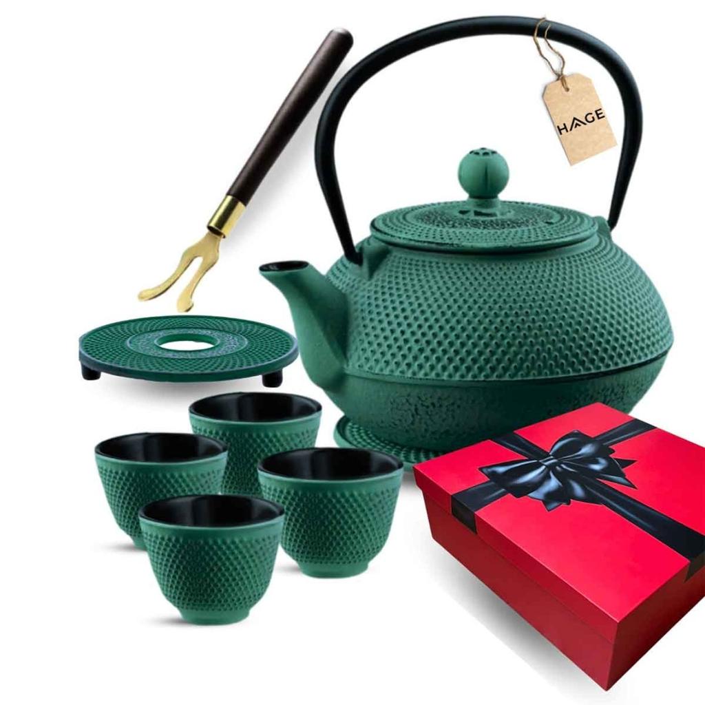 ZAPARZACZ ŻELIWNY DZBANEK ZIELONY 900ml Z FILTREM i FILIŻANKAMI PREZENT — купить товар онлайн с бесплатной доставкой до всему миру!