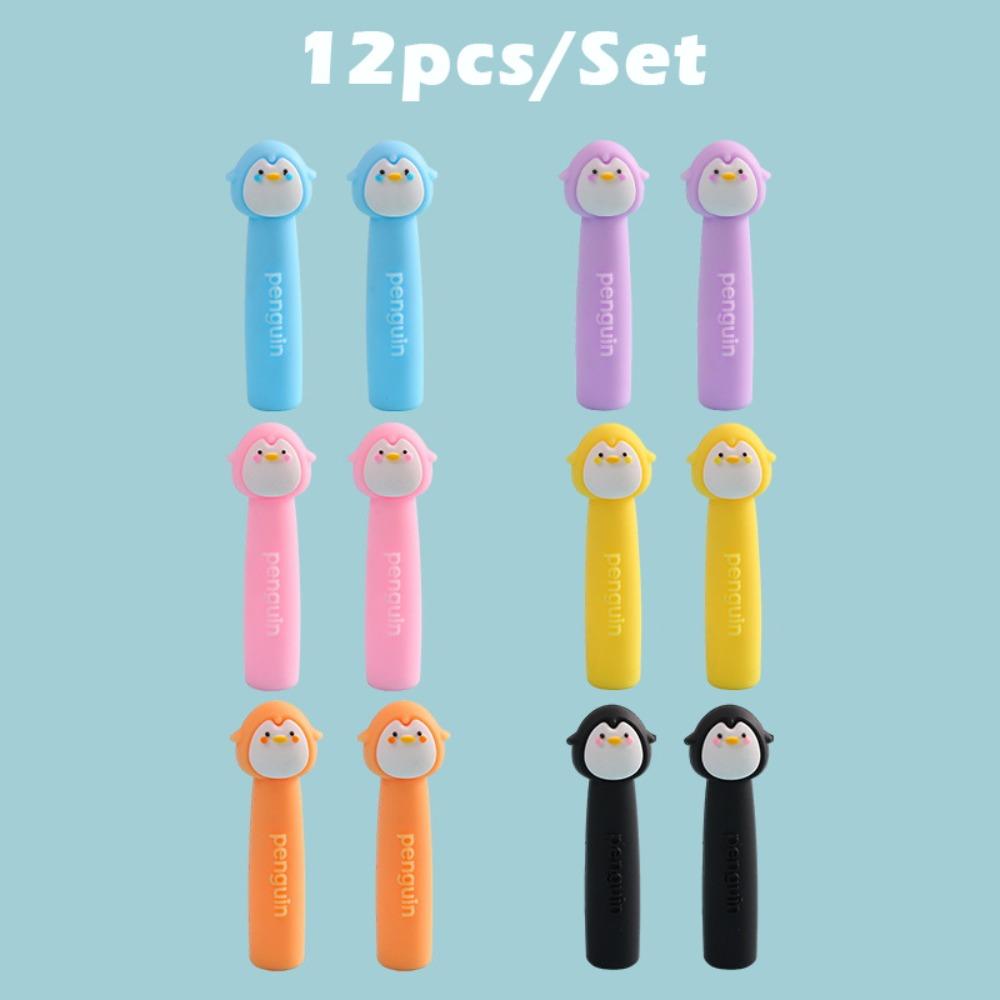 6pcs/12pcs Penguin Shape Pencil Extender Soft Rubber Pen Cap Cartoon Pencil Nib Protector Children