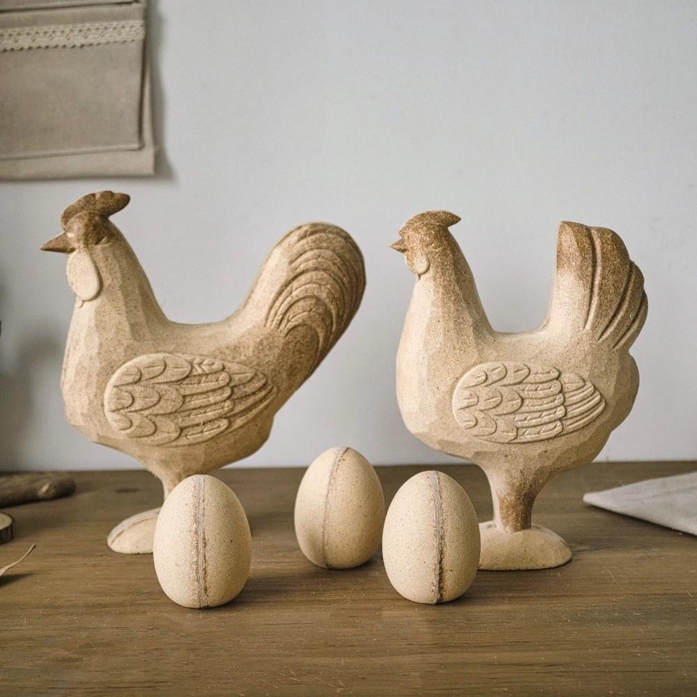 Hand-painted Wooden Bunny Statue Rooster Painting Rabbit Figure Home Decoration