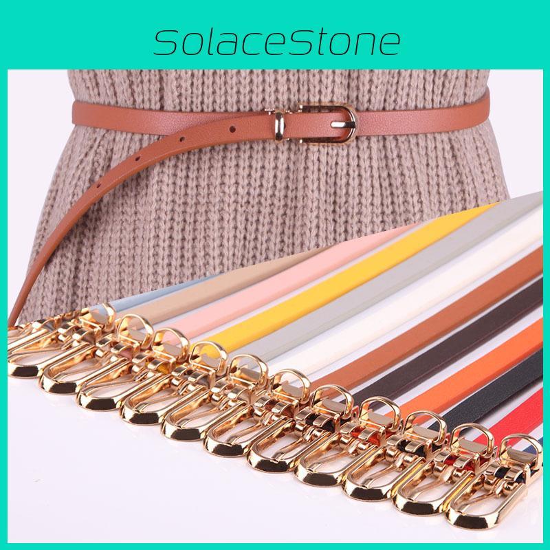 This fashion belt features a slim profile made of synthetic leather, The alloy buckle with pin closure ensures secure fastening, while the versatile design complements casual, office, or minimalist outfits. Suitable for summer wear, its ideal for enhancing dresses or sweaters. Easy to maintain with a wipe clean method and available in multiple colors for personalized style.