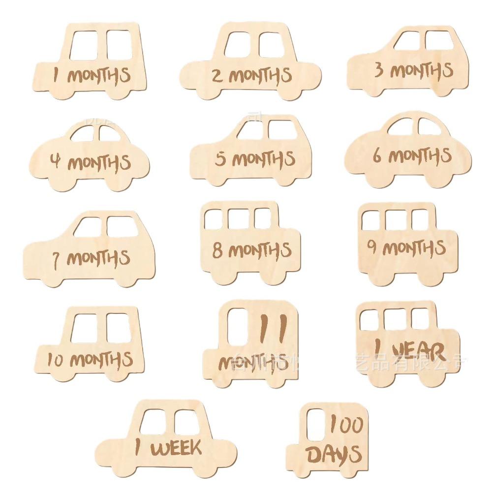 14pcs Cute Wooden Memorial Cards Handmade Baby Growth Cards Baby Birthing Gift