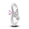 Charms Spring 925 Silver Color Rings Pink Heart Shaped Zircon Cat Rings for Woman Fine Romantic Wedding Engagement Jewelry Gifts