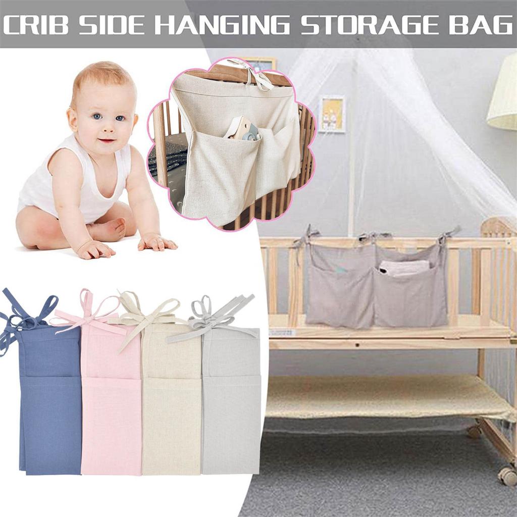 Linen Baby Bedside Hanging Storage Bag, 2 Pockets Organizer For Baby Cribs And Toys