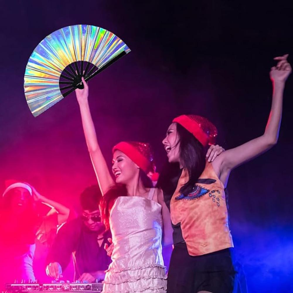 ПВХ Лазерные Цвета Ручной Веер Градиентный Цветной Танцевальный Веер Домашний Декор Веер для Тайцзи Диско