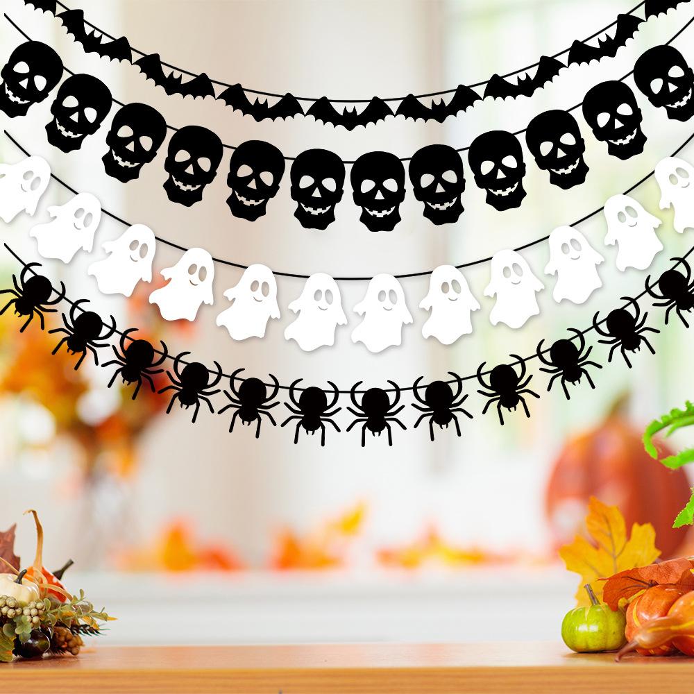 Halloween Ghost paper Garland Scary Halloween Decoration bat Spider Skull banner for Halloween Party Haunted House home Decor