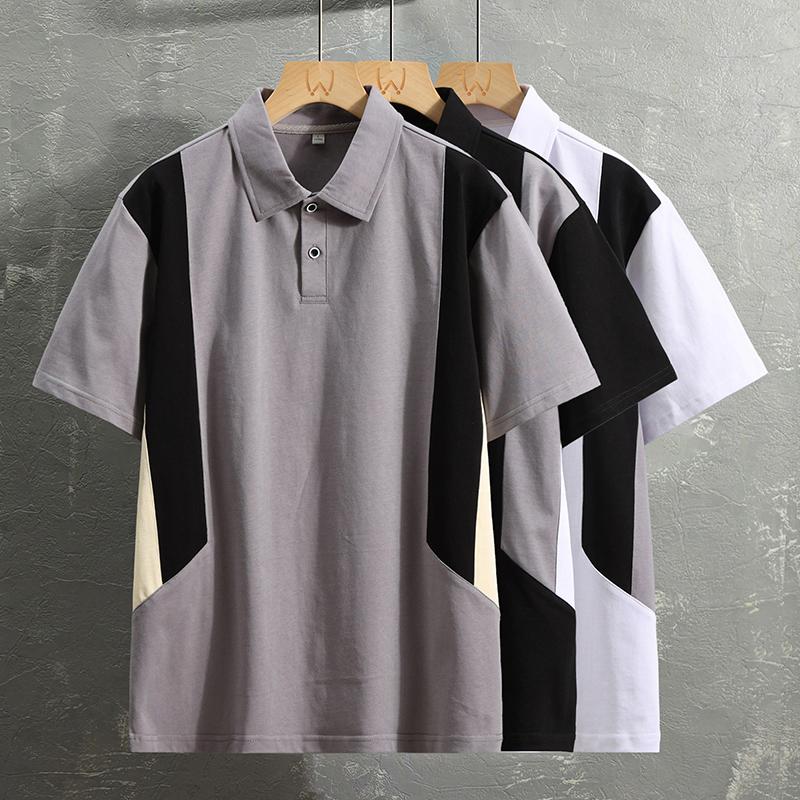Мужская футболка-поло с цветовыми блоками и коротким рукавом, Повседневный топ с контрастной панелью, Обычная посадка, Уличный стиль, Для повседневной носки