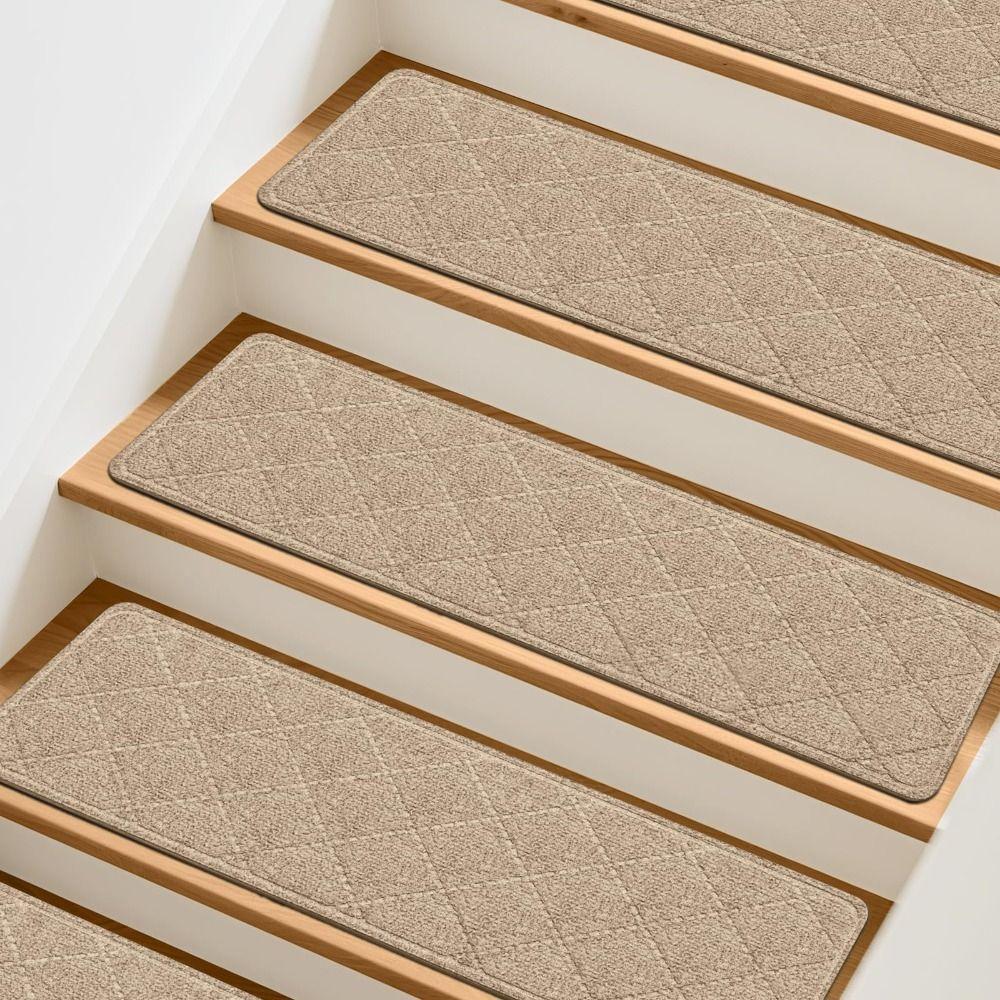 1. **Материал из полиэфирного волокна премиум-класса**: Изготовленные из высококачественного полиэфирного волокна, эти накладки на ступени лестницы отличаются исключительной долговечностью и комфортом под ногами.. Их плюшевая текстура усиливает эстетическую привлекательность вашей лестницы, обеспечивая при этом дополнительную защиту.