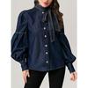 Модная женская джинсовая рубашка в европейском стиле 2025 года с завязкой-бабочкой