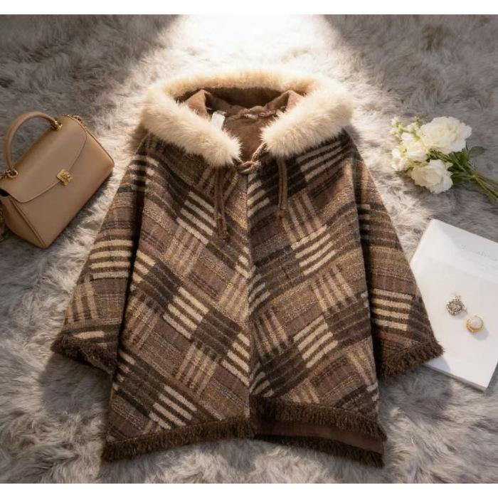 Высококачественный клетчатый кейп-шаль-пальто в стиле Майяра для женщин, маленькие размеры - Издание Осень/Зима 2026 — купить товар онлайн с бесплатной доставкой по всему миру!