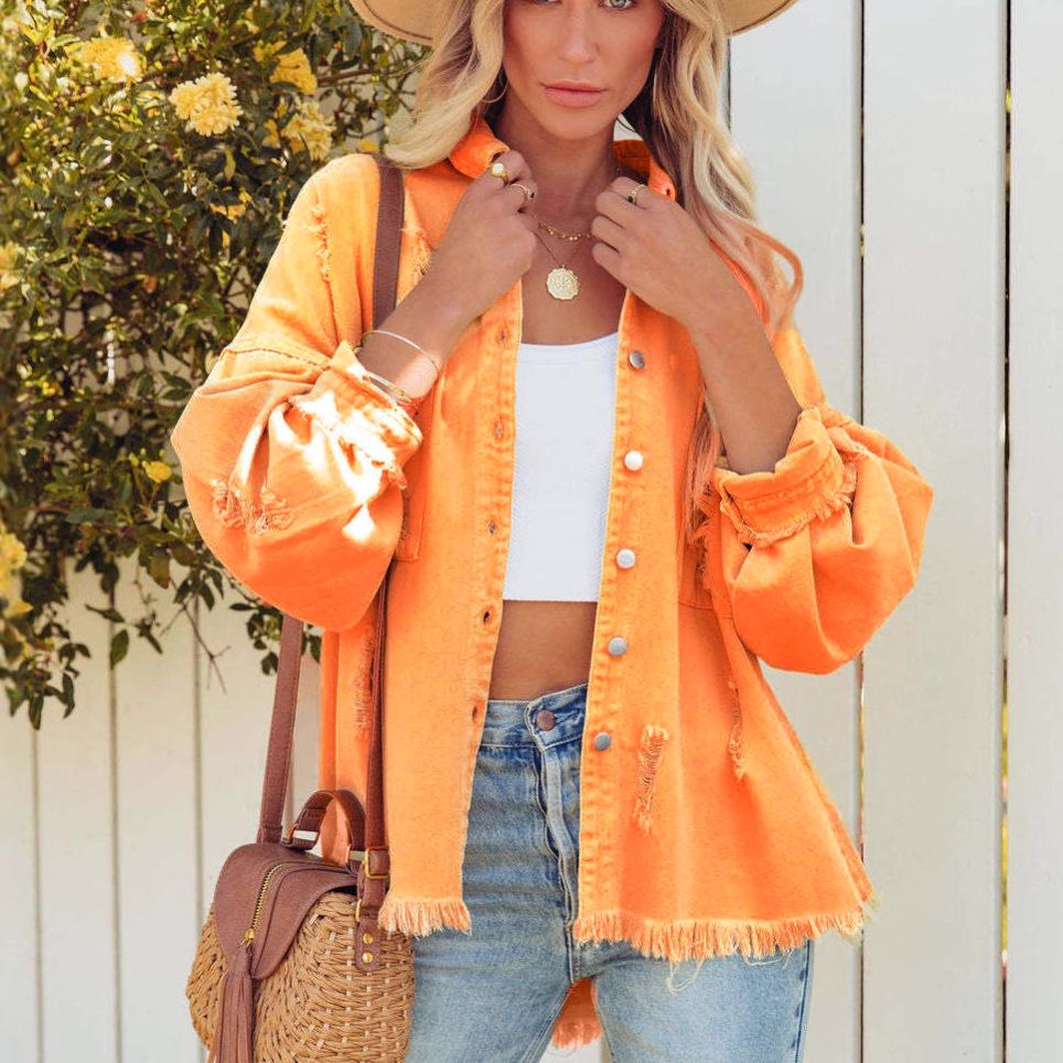 Джинсовая куртка с потертостями и разрывами в европейском и американском стиле для женщин 2025 года — купить товар онлайн с бесплатной доставкой по всему миру!