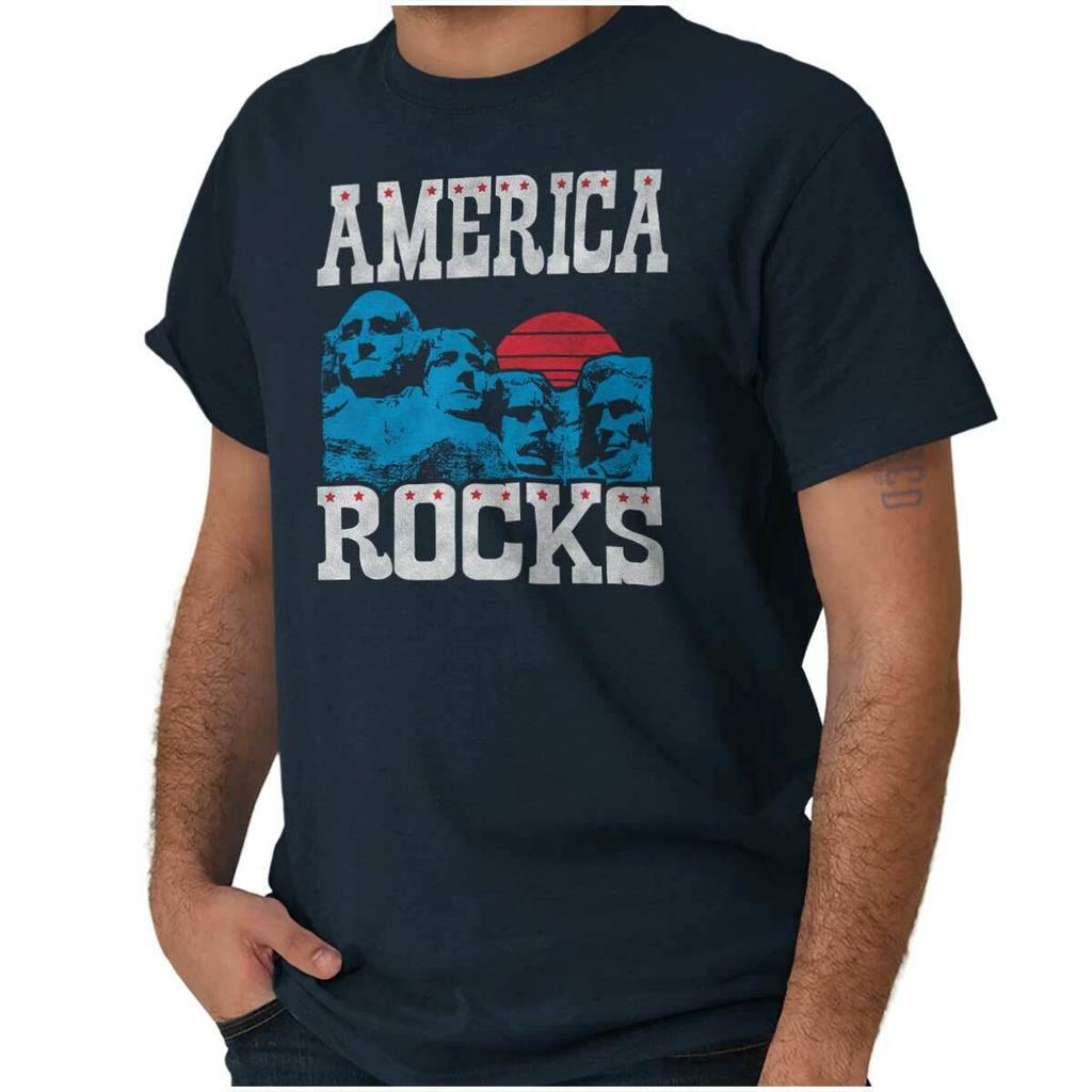 Funny America Rocks Pun Mount Rushmore Humor Womens or Mens Crewneck T Shirt Tee — купить товар онлайн с бесплатной доставкой по всему миру!