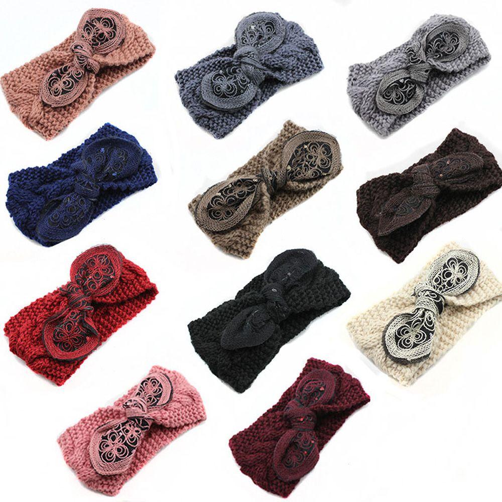 Богемская Женская Девичья Цветочная Повязка на Голову с Бантом и Ушками Кролика Тюрбан Вязаная Крючком Повязка на Волосы