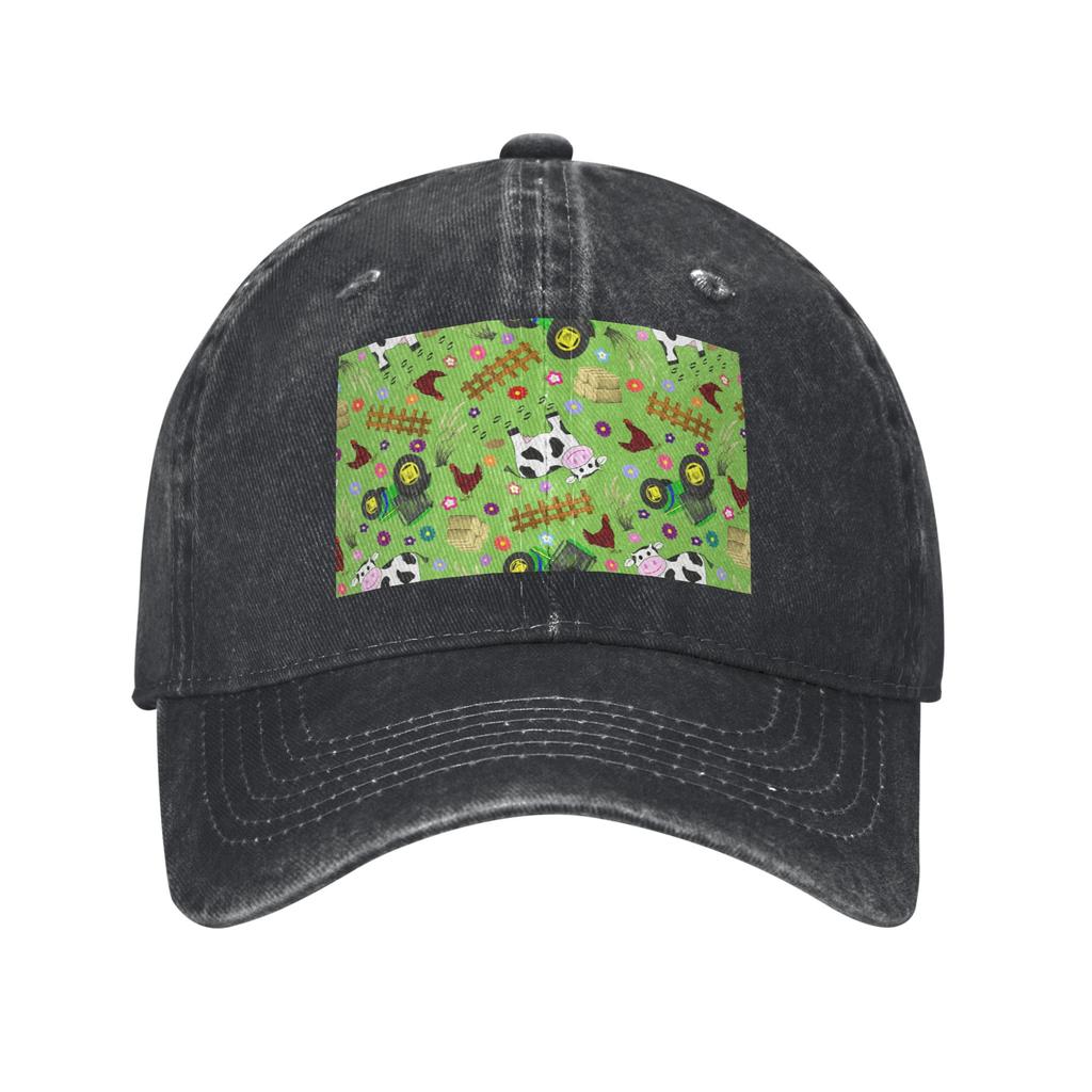 Farmyard Cow and Tractor Washed Denim Cap Casual Baseball Caps Adjustable Hat Summer Unisex Baseball Hats