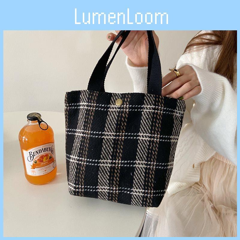 Стильная клетчатая шерстяная сумка для ланча, шикарная минималистичная сумка-тоут для повседневного использования