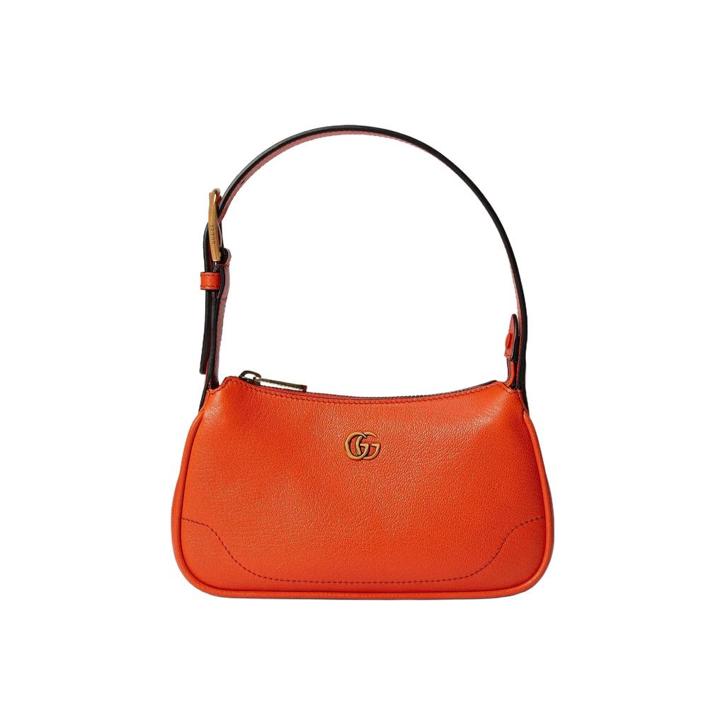 GUCCI Aphrodite Gold-Finish Double G Logo Zipper Closure Leather Underarm Bag Tote Shoulder Bag Women's Orange — купить товар онлайн с бесплатной доставкой по всему миру!