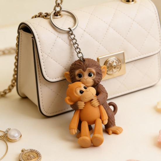 Этот очаровательный брелок-обезьянка изготовлен из высококачественных материалов, что обеспечивает его долговечность и стиль для повседневного использования.. Его уникальный и креативный дизайн делает его идеальным аксессуаром, чтобы украсить ваши ключи, сумки или даже как очаровательное украшение для стола..