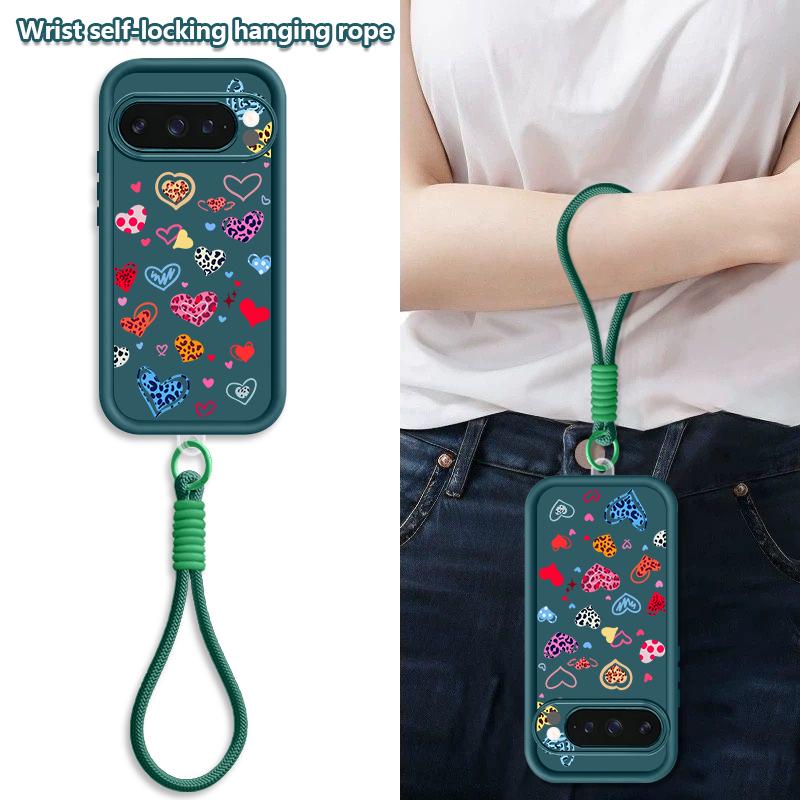 Чехол с красочным принтом в виде сердечек для Google Pixel 10 8 7 Pro 9A 8A Pixel 9 10 Pro XL с ремешком на запястье и шнурком, мягкий TPU.