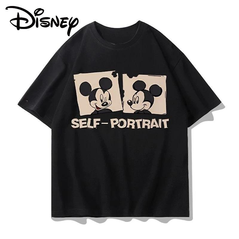 Дисней Микки Маус Ретро Автопортрет Унисекс Футболка Оверсайз Винтажная Хлопок Повседневная Короткая Удобная Модная Футболка