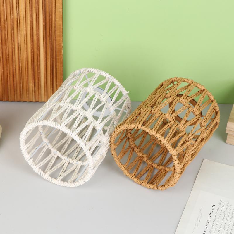 Ручной работы Бумажная веревка Плетеная Ротанговая Абажур Бохо Декоративный Абажур Настольная лампа Декоративный Для сада Двора Гостиной