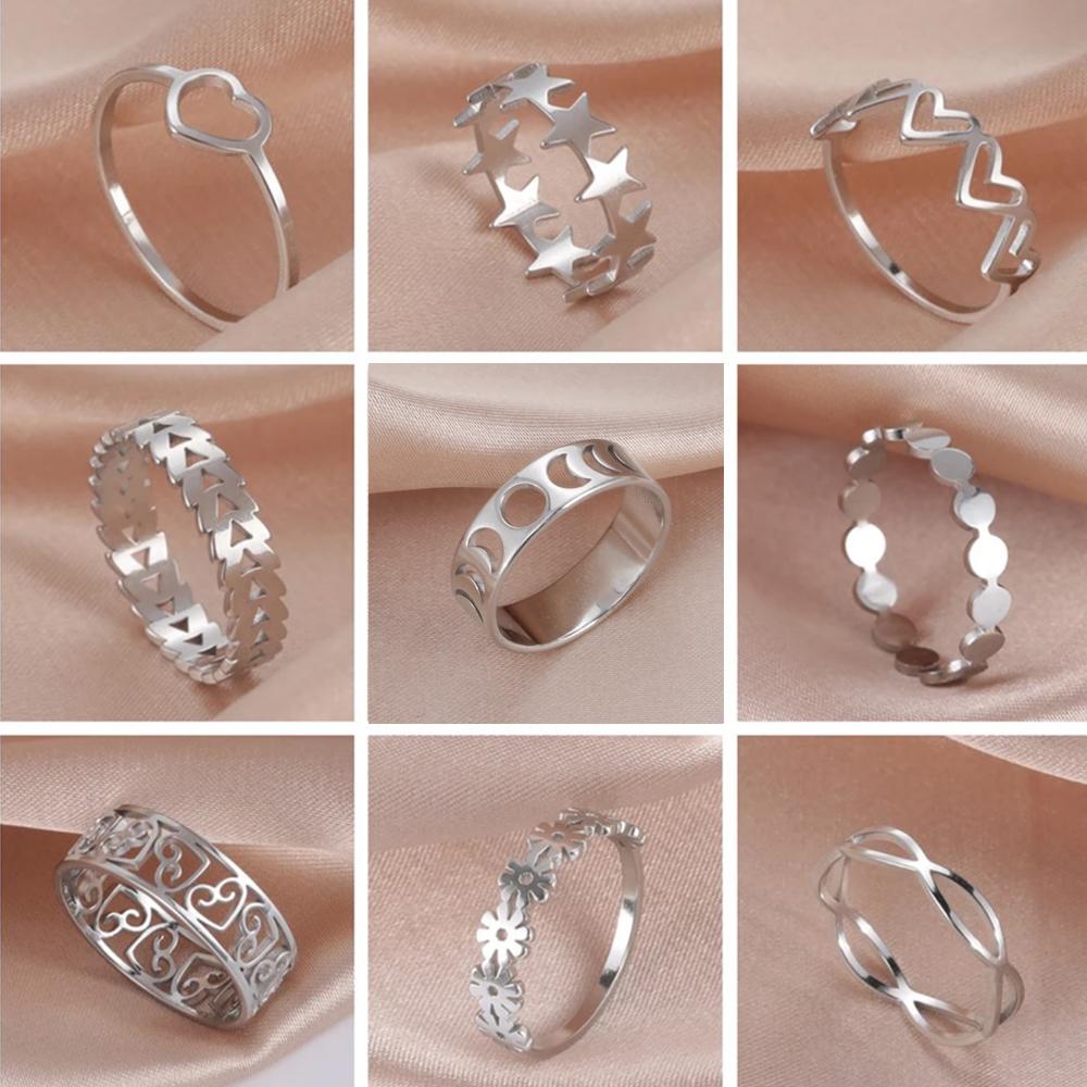 Кольцо из нержавеющей стали Сердце Звезда Цветок Бабочка Фазы Луны Геометрическое Женские Кольца на Палец Свадебный Подарок