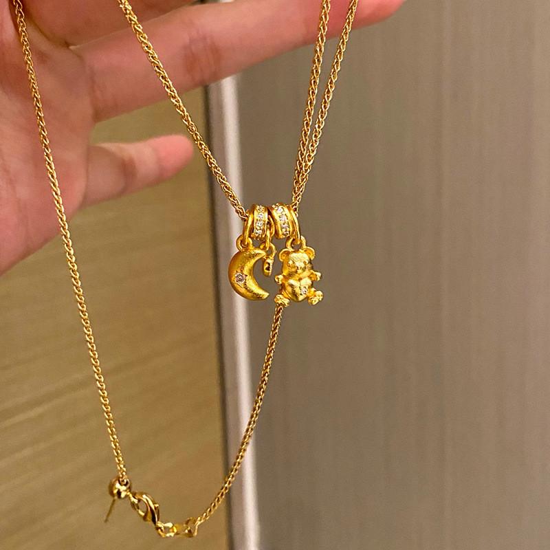 Simple Zircon Moon Bear Pendant Necklace For Girls Fashion Accessory Jewelry