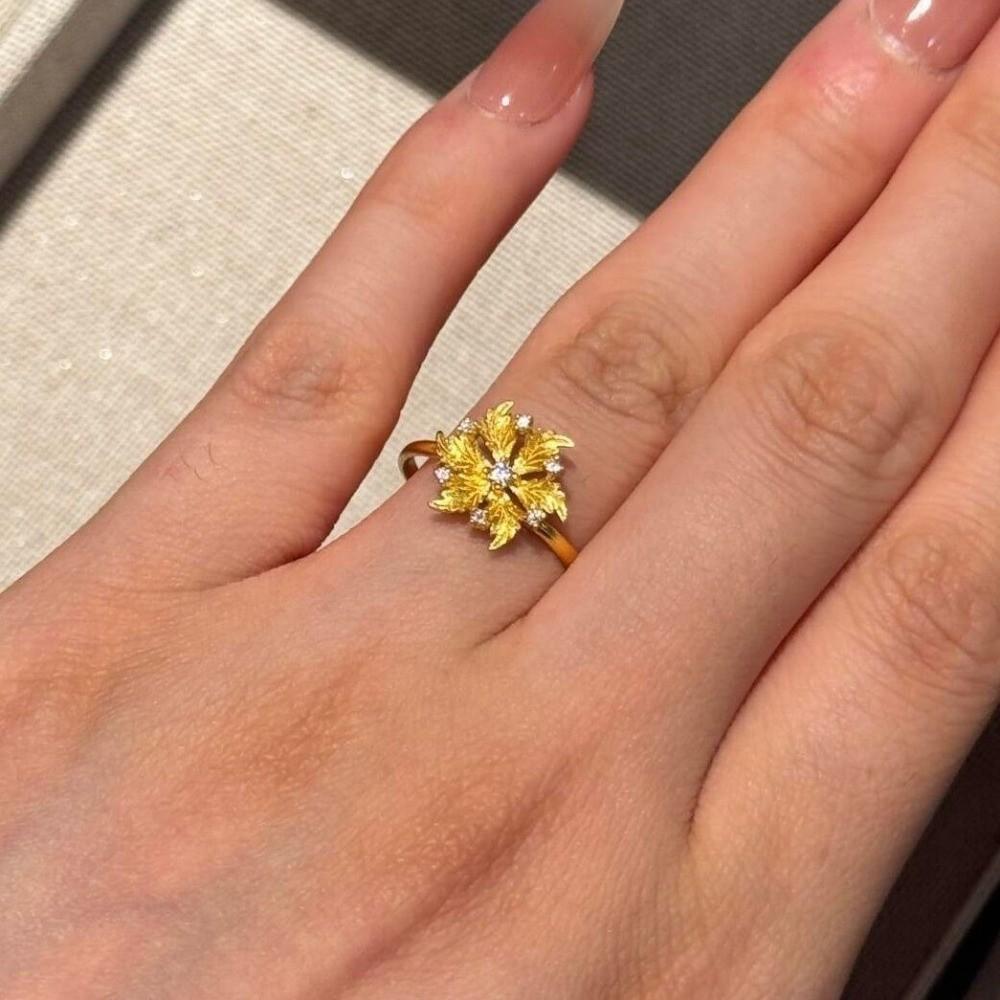 Ancient Peony Rhinestone Rings Gold Plated Gold Jewelry Accessories Engagement