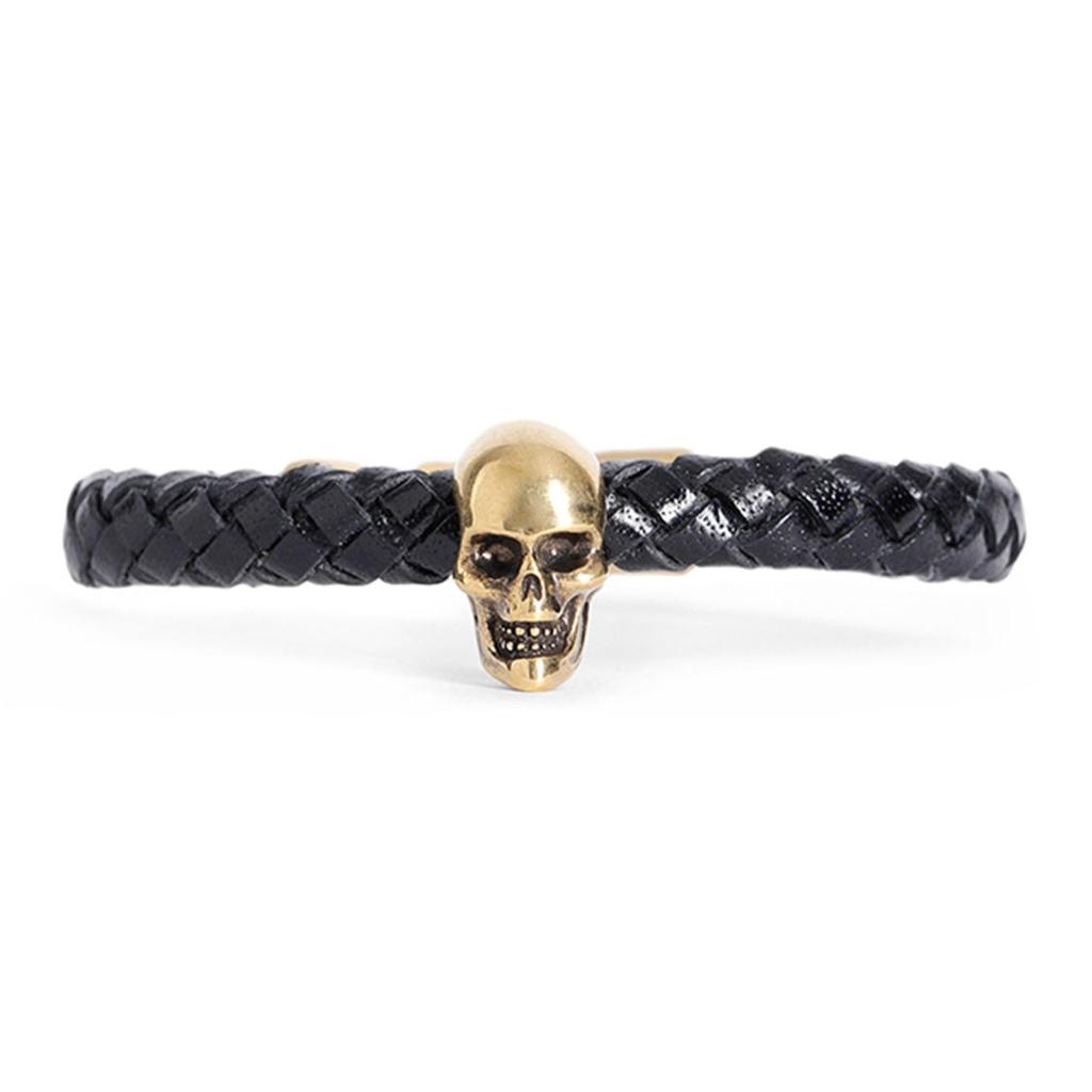Alexander McQueen Metal Skull Leather Woven Bracelet Men Bracelets Gold 554602-J16KG-1000 — купить товар онлайн с бесплатной доставкой по всему миру!
