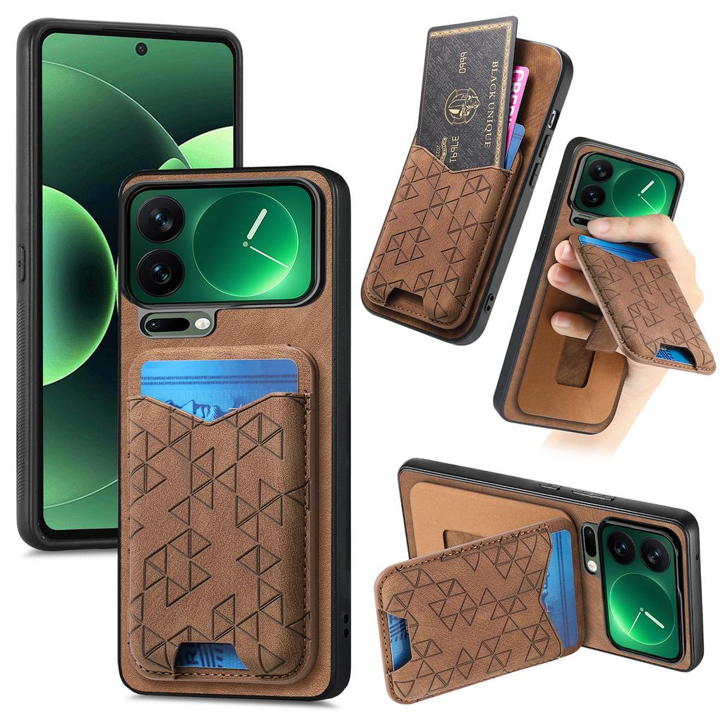 Тисненая Ретро Роскошная Магнитная RFID-Карта Кожаный чехол для телефона For Xiaomi 17 Pro Max 17Pro 15T подставка Ударопрочный Чехол
