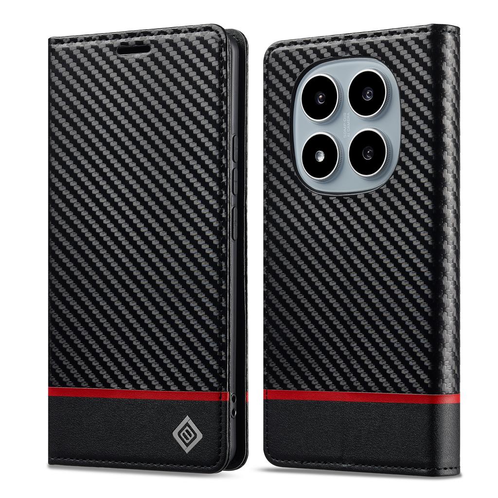 Роскошный Кошелек-чехол из Кожи с Слотами для Карт из Углеродного Волокна Для Redmi Note 15 14 Pro Plus 13 13C 14C Тонкий Ударопрочный Чехол-подставка