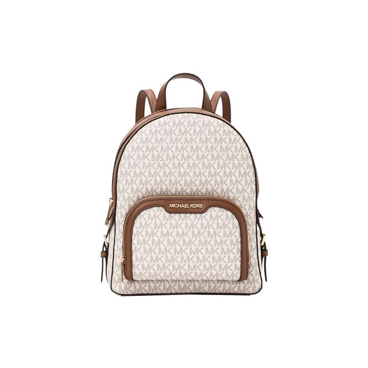 Michael Kors Mk Jaycee Series 24 Zipper Closure Classic Monogram Coated Canvas And Leather Backpack Women backpack Vanilla Brown 35S2G8TB2B-150